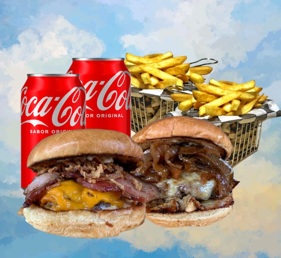 O começo de tudo… agora compartilhado. O Combo Éden reúne os dois primeiros pecados da Pecare em uma experiência completa pra quem decidiu ir além: o Adão Burger, com seu brioche macio, blend bovino de 120g, cheddar derretido, bacon crocante e cebola crisp; e o Eva Burger, equilibrando suculência com mussarela derretida, maionese artesanal e cebola caramelizada levemente adocicada.Pra acompanhar, 2 batatas fritas crocantes e 2 refrigerantes gelados de 350ml, criando o combo perfeito pra dividir… ou não.